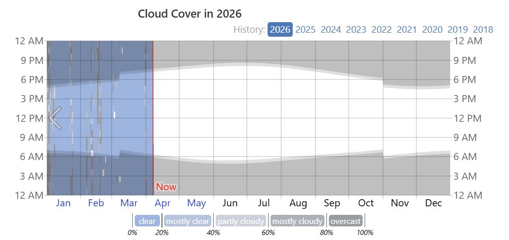 Disfrutamos de alrededor de 300 noches despejadas al año — echa un vistazo a los registros de cobertura de nubes de 2024 en adelante:
