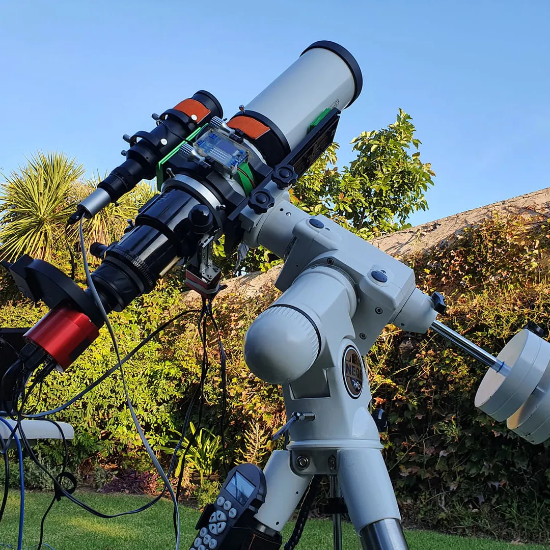 SkyWatcher Esprit 100mm, EQ6pro with Rowan kit (excellent guiding and stability), ASI2600MM, Chroma LRGB + Ha, OIII, SII filters. 60mm Off-Axis Guidescope. USD 25/hour