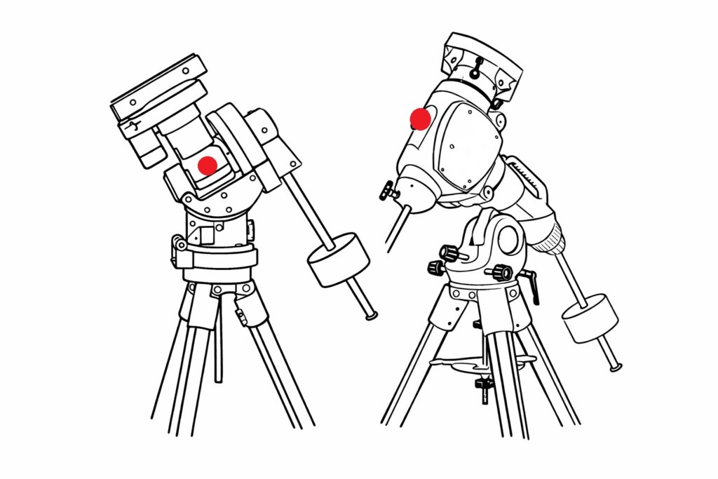 The measurement must be taken from the tip of the mount’s rotation axis if the mount is a traditional German equatorial mount (EQ6R, EQ8, AM3, AM5, etc.), and from the center of the axis if the mount is center-balanced (CEM40, CEM70, CEM120, CQ350, etc.).